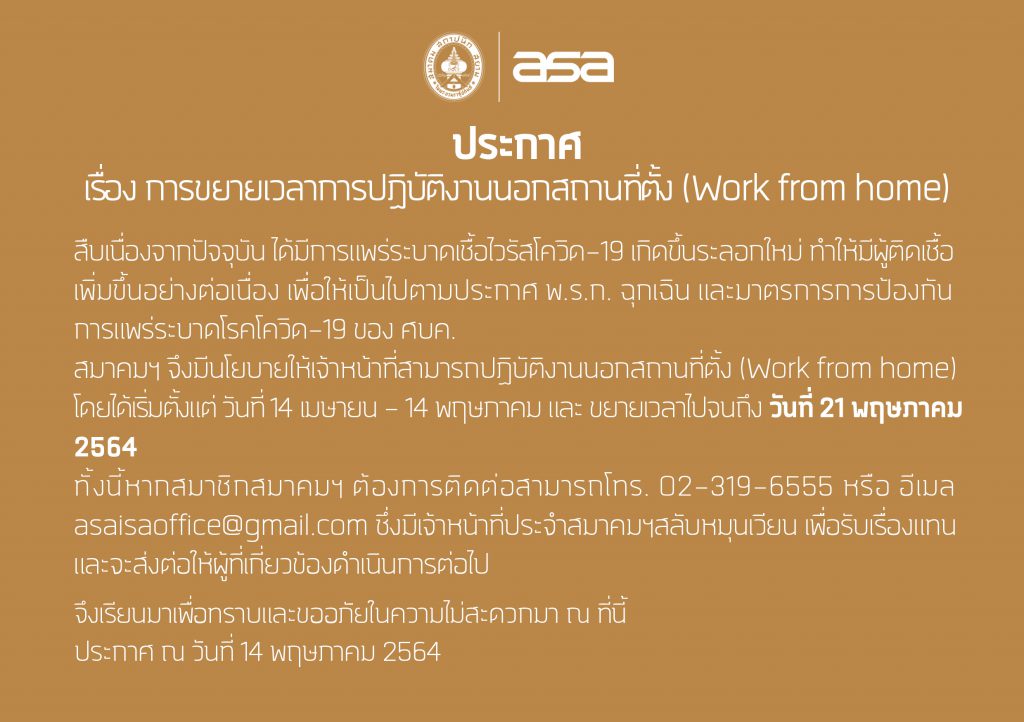 ประกาศ เรื่อง ขยายเวลาการปฏิบัติงานนอกสถานที่ตั้ง (WORK FROM HOME)