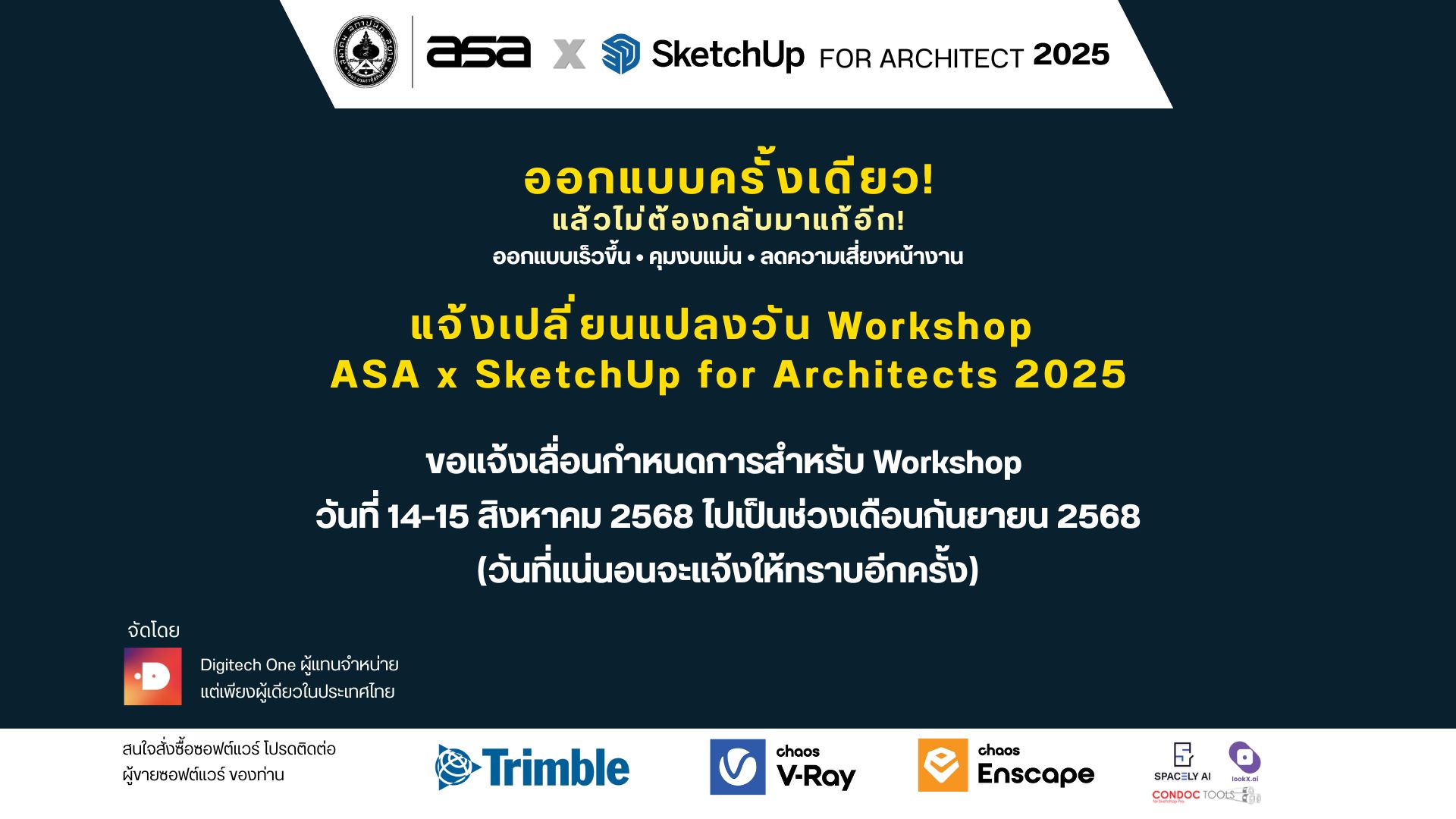 แจ้งเปลี่ยนแปลงวัน Workshop – ASA x SketchUp for Architects 2025